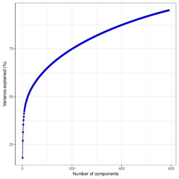 The figure below shows the cumulative distribution functions of variance explained by the principal components.